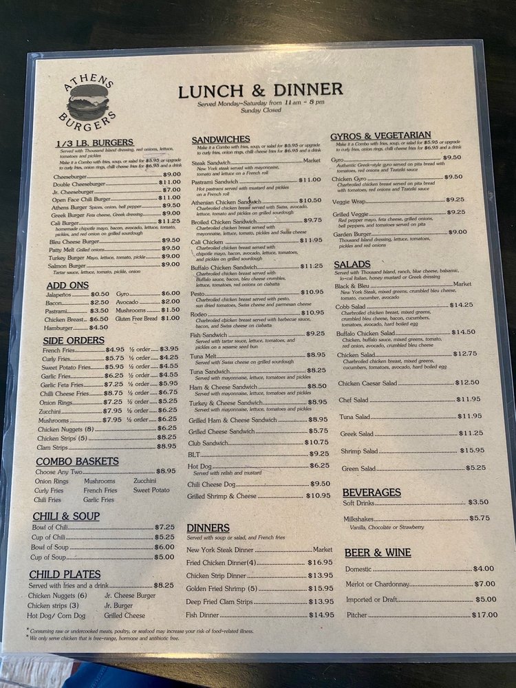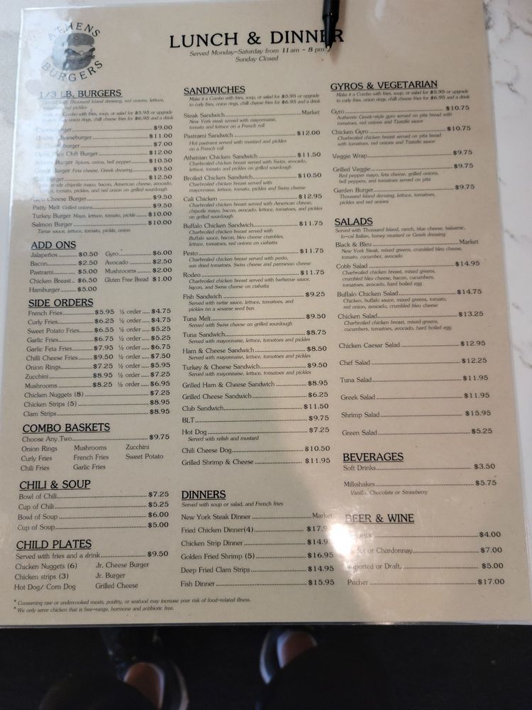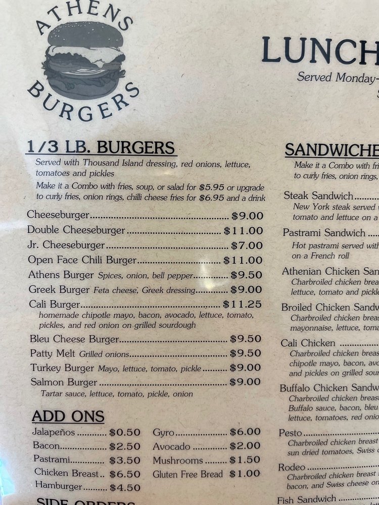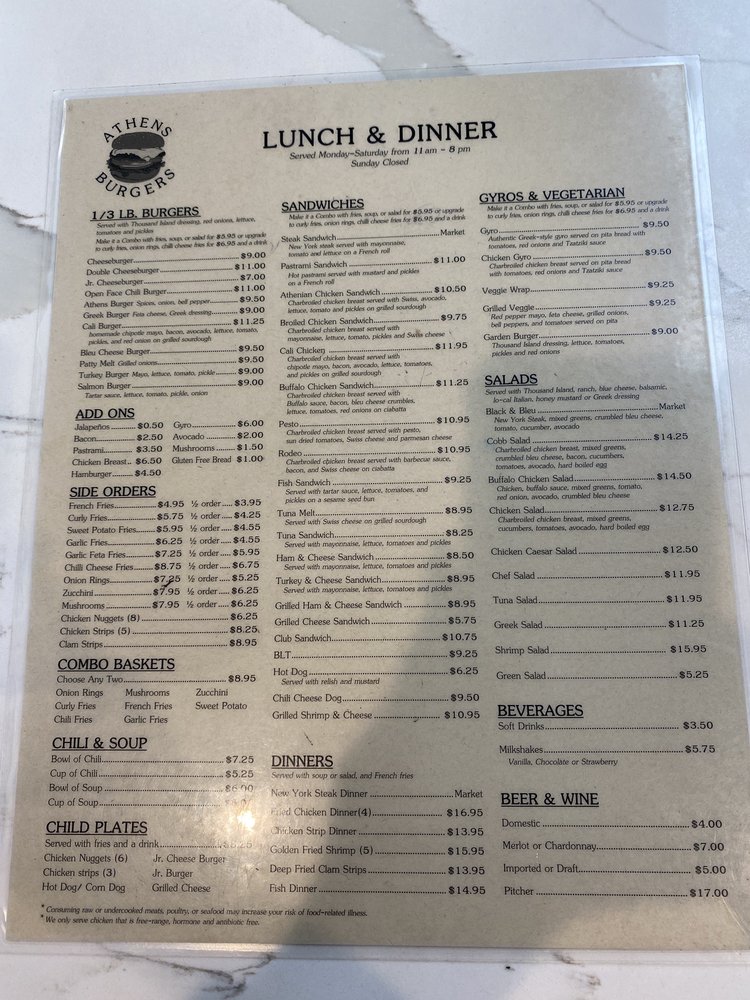 Athens Burgers Restaurant in Dublin, CA offers a variety of delicious fast-food burger options with vegan choices available. The spot is known for its unpretentious, clean atmosphere and focus on fresh ingredients. Customers rave about the Blue Cheese Burger, Buffalo Chicken Sandwich, and perfectly fried mushrooms that burst with flavor. The portions are generous, and the staff is friendly and attentive. Whether you're in the mood for a classic burger or a unique grilled cheese sandwich, Athens Burgers Restaurant has something for everyone. Don't miss out on their flavorful gyro pita with tzatziki sauce or their perfectly cooked fish sandwich. This family-friendly restaurant is perfect for a quick lunch or a relaxed dinner with friends. Make sure to try their delicious breakfast, salads, and hearty sandwiches for a satisfying meal every time.