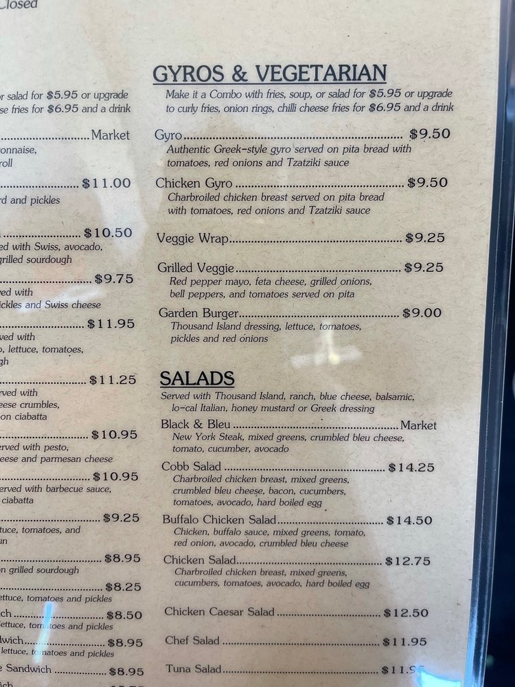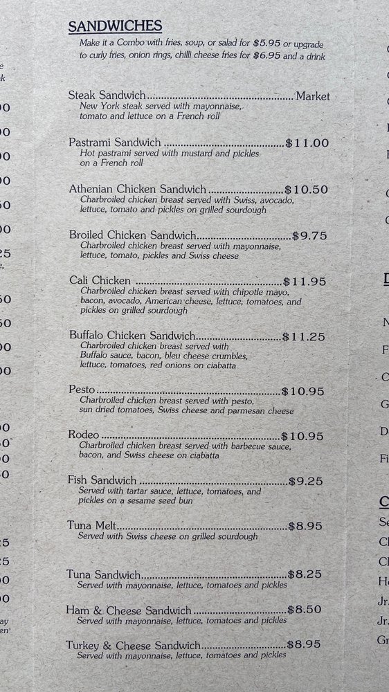 Choose Any Sandwich from Below. Make it a combo with fries, soup, salad, fruit cup. Upgrade to curly fries, onion rings, chili cheese fries, Sweet Potato Fries, Zucchini, Mushrooms.Drink included