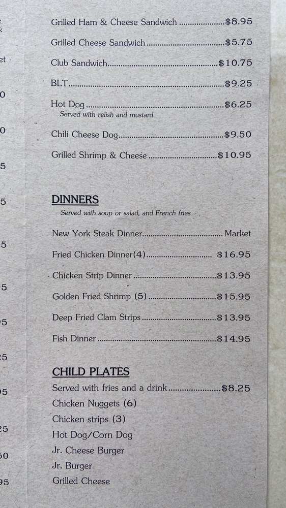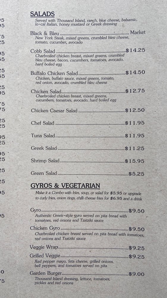 Five golden fried shrimp, served with choice of soup or salad. Salad dressings include Thousand Island, Ranch, Bleu Cheese, Balsamic, Local Italian, Honey Mustard, and Greek. Extra dressings available.